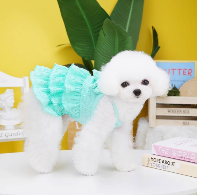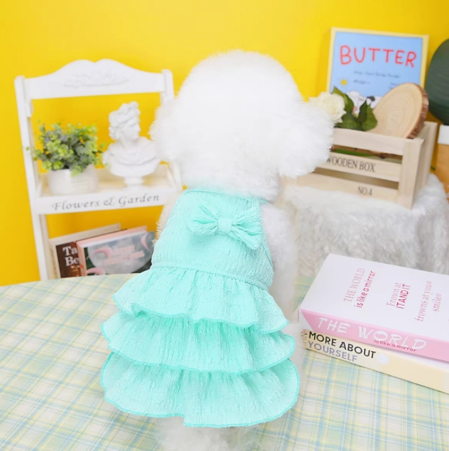 宠物衣服春夏薄款狗裙子泰迪比熊小型犬猫咪糖果色层次连衣裙