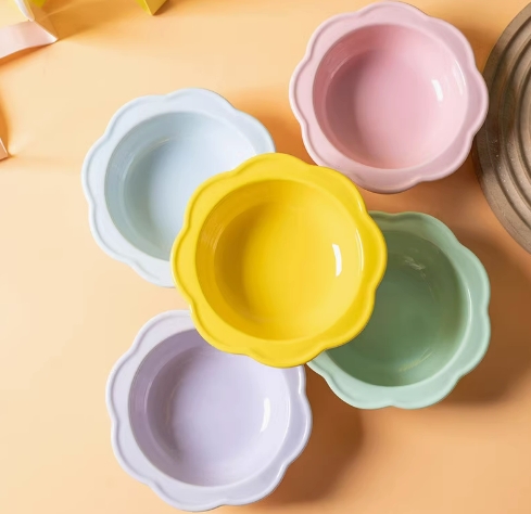 宠物碗陶瓷猫碗花朵碗