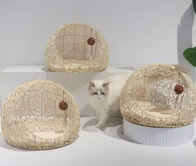 猫窝夏季四季通用藤编幼猫猫床猫咪用品宠物房子玩具可拆洗狗窝凉