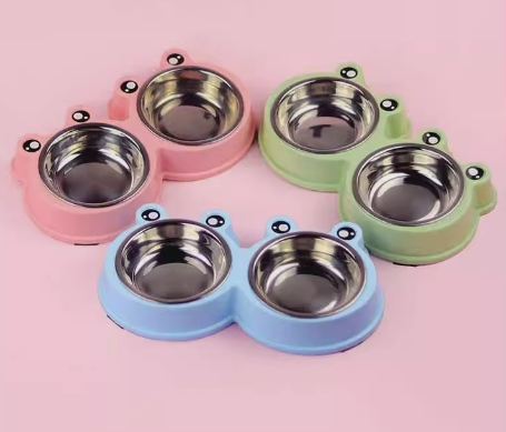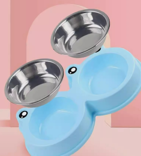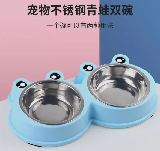 猫餐具宠物狗碗、卡通大眼青蛙宠物、不锈钢狗碗